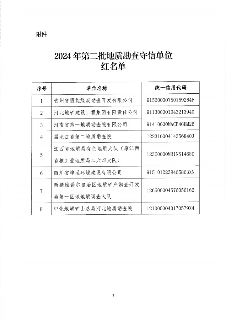 附 件: 2024年第二批地質(zhì)勘查守信單位紅名單