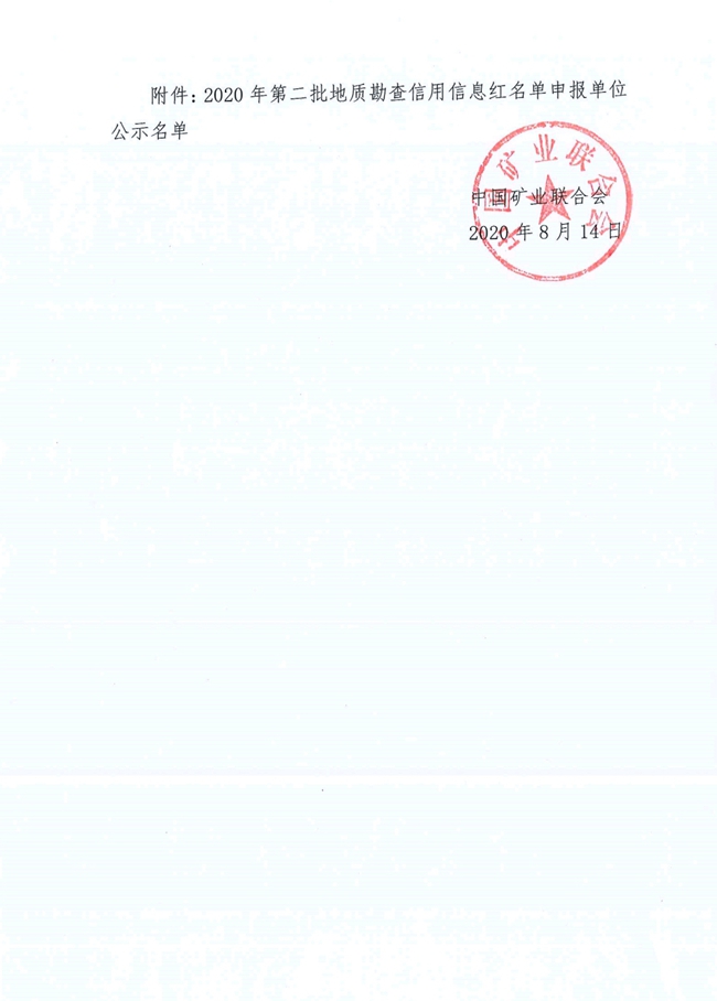 關(guān)于對(duì)2020年第二批地質(zhì)勘查信用信息紅名單申報(bào)單位進(jìn)行公示的通知