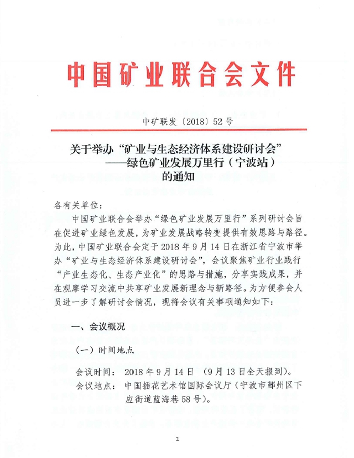 中國礦聯(lián):綠色礦業(yè)發(fā)展萬里行(寧波站)的通知