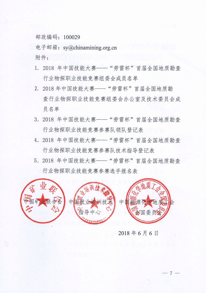 關(guān)于舉辦2018年中國(guó)技能大賽 “勞雷杯”首屆全國(guó)地質(zhì)勘查行業(yè)物探職業(yè)技能競(jìng)賽的通知