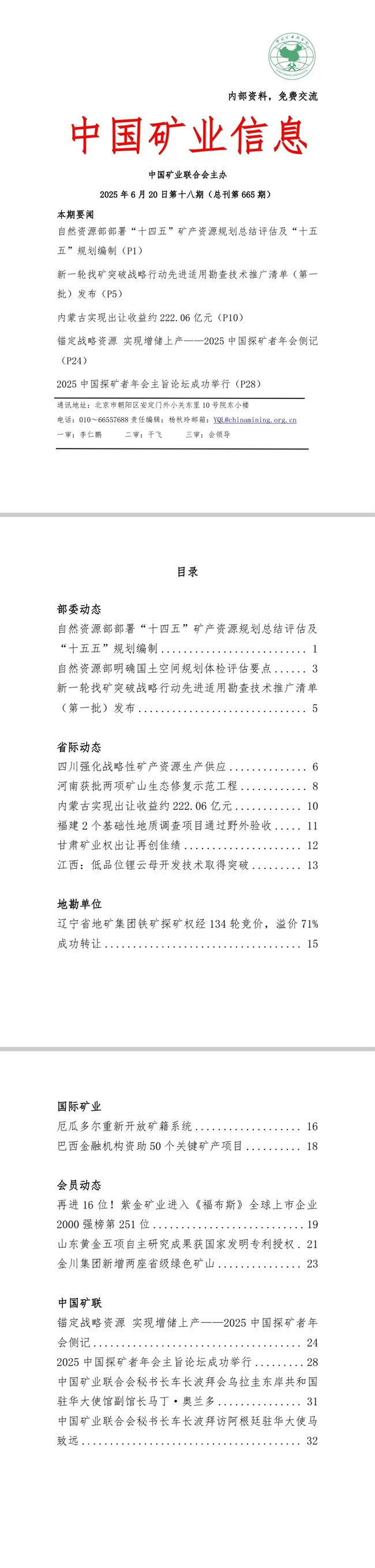 2025年6月16日—6月20日《中國礦業(yè)信息》第十八期(總刊第665期)