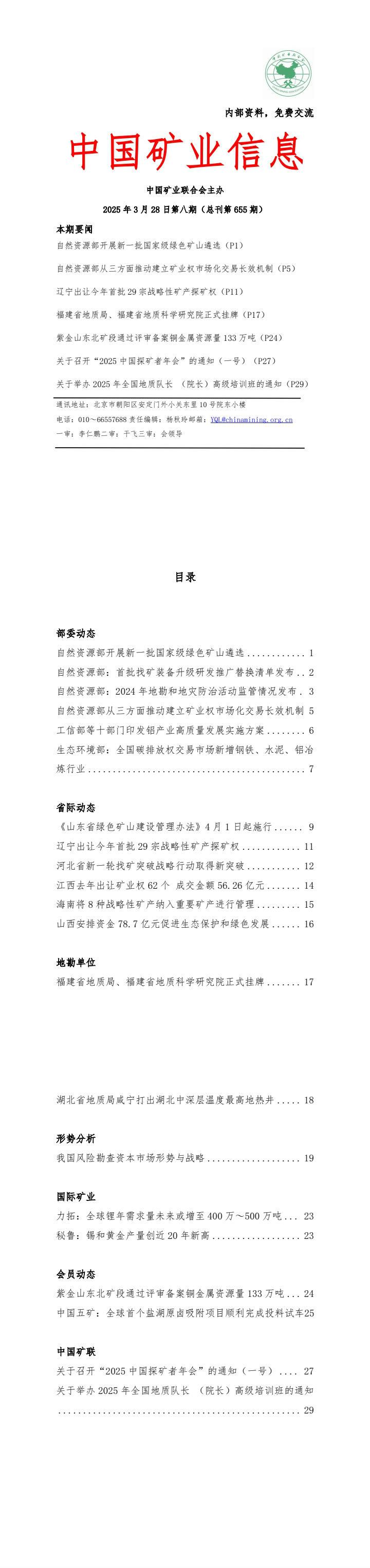 中國礦業(yè)網(wǎng):2025年3月24日—3月28日《中國礦業(yè)信息》第八期
