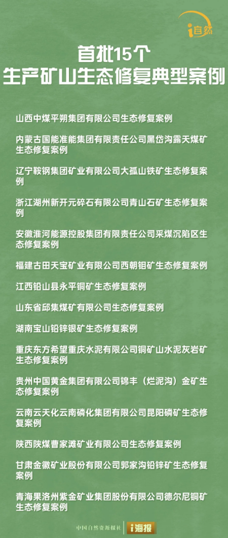 據(jù)自然資源部國(guó)土空間生態(tài)修復(fù)司相關(guān)負(fù)責(zé)人介紹,礦山生態(tài)修復(fù)是國(guó)土空間生態(tài)修復(fù)的重要工作內(nèi)容,是建設(shè)綠色礦山的題中之義,在推動(dòng)礦業(yè)綠色轉(zhuǎn)型和高質(zhì)量發(fā)展中發(fā)揮著重要作用。本次公布的案例是礦山企業(yè)積極探索、深入開(kāi)展生態(tài)修復(fù)實(shí)踐的縮影。案例涉及國(guó)有、民營(yíng)、中外合作等不同企業(yè),煤礦、金屬礦、建材礦等不同礦種,以及地下開(kāi)采、露天開(kāi)采、聯(lián)合開(kāi)采等各類開(kāi)采方式,覆蓋西北生態(tài)脆弱區(qū)、黃河流域、長(zhǎng)江流域、青藏高原等不同區(qū)域。案例展示了生產(chǎn)礦山在推進(jìn)礦區(qū)生態(tài)修復(fù)工作中保護(hù)優(yōu)先、源頭防控,統(tǒng)籌規(guī)劃、科學(xué)實(shí)施,科技引領(lǐng)、技術(shù)創(chuàng)新等方面的先進(jìn)做法,以及在改善礦區(qū)生態(tài)系統(tǒng)功能和人居環(huán)境、促進(jìn)自然資源節(jié)約集約循環(huán)利用、產(chǎn)業(yè)導(dǎo)入與轉(zhuǎn)型發(fā)展等方面取得的成效,展現(xiàn)了礦山企業(yè)承擔(dān)社會(huì)責(zé)任、履行生態(tài)修復(fù)法定義務(wù)的典范。