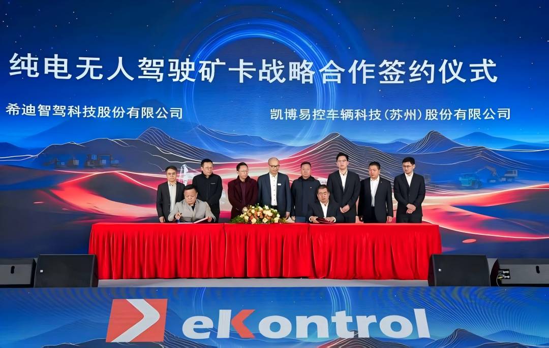 簽約儀式將發(fā)布會推向了高潮,凱博易控分別與中國重汽集團濟南特種車有限公司、新疆鑫達特礦業(yè)有限責任公司、陜西同力重工股份有限公司、希迪智駕科技股份有限公司、新疆能源重工科創(chuàng)有限責任公司等行業(yè)巨頭簽訂訂單及戰(zhàn)略合作協(xié)議,進一步深化產業(yè)鏈上下游的協(xié)同合作,共同推動礦山裝備技術進步與市場拓展。