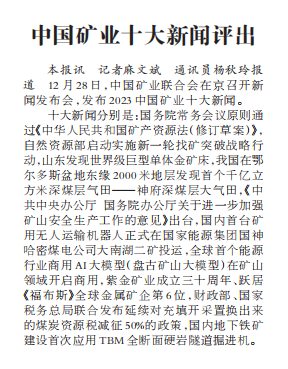 (科技日報)2023中國礦業(yè)十大新聞在京揭曉