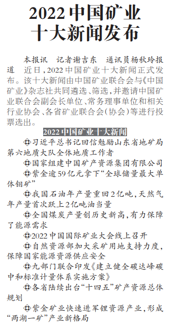 (中國(guó)經(jīng)濟(jì)時(shí)報(bào))2022中國(guó)礦業(yè)十大新聞發(fā)布