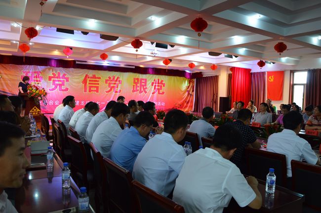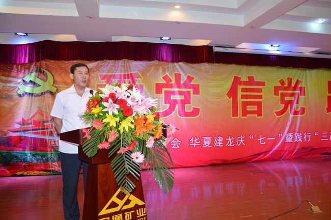 為慶祝建黨94周年,進一步學習貫徹黨的十八大、十八屆三中、四中全會和習近平總書記系列重要講話精神,激勵廣大黨員切實增強踐行"三嚴三實"要求的思想自覺和行動自覺,改進作風建設(shè),夯實黨的執(zhí)政基礎(chǔ),進一步增強黨組織的凝聚力和戰(zhàn)斗力,充分發(fā)揮黨員的先鋒模范作用,促進民營企業(yè)黨建工作。中國礦業(yè)聯(lián)合會攜手主席團單位華夏建龍以"愛黨、信黨、跟黨"為主題慶"七一"暨踐行"三嚴三實"座談會在灤平建龍寶通礦業(yè)舉行。