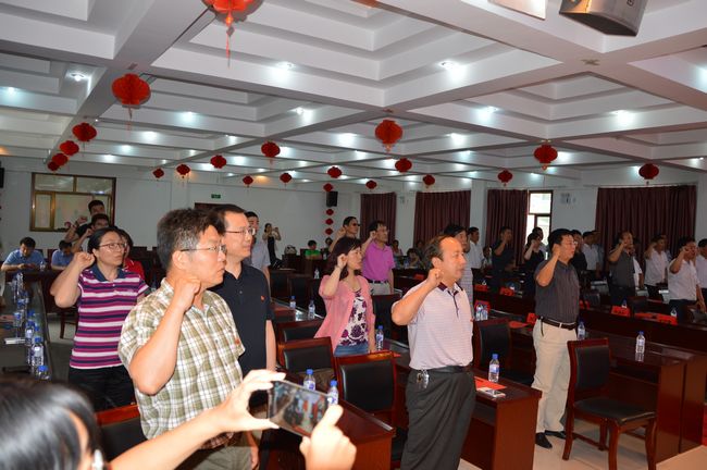 圖為全體參會黨員重溫入黨誓詞:我志愿加入中國共產(chǎn)黨,擁護黨的綱領(lǐng),遵守黨的章程,履行黨員義務,執(zhí)行黨的決定,嚴守黨的紀律,保守黨的秘密,對黨忠誠,積極工作,為共產(chǎn)主義奮斗終身,隨時準備為黨和人民犧牲一切,永不叛黨。