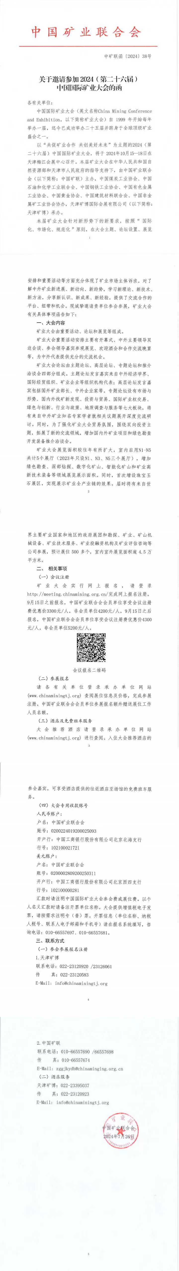 下載:關(guān)于邀請參加 2024(第二十六屆)中國國際礦業(yè)大會的函.pdf