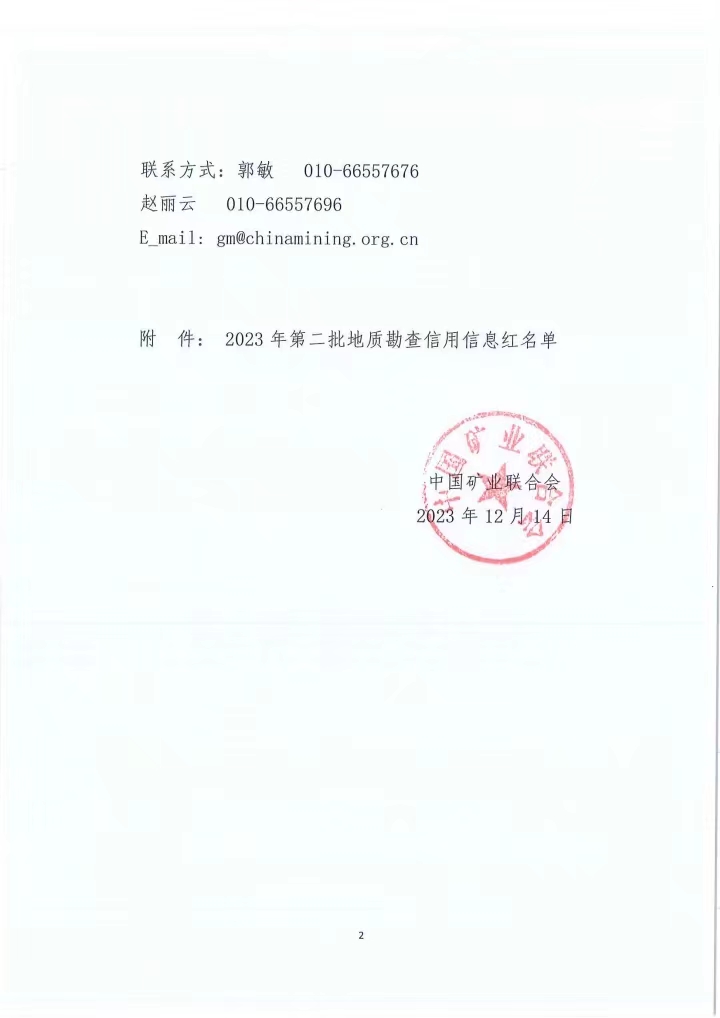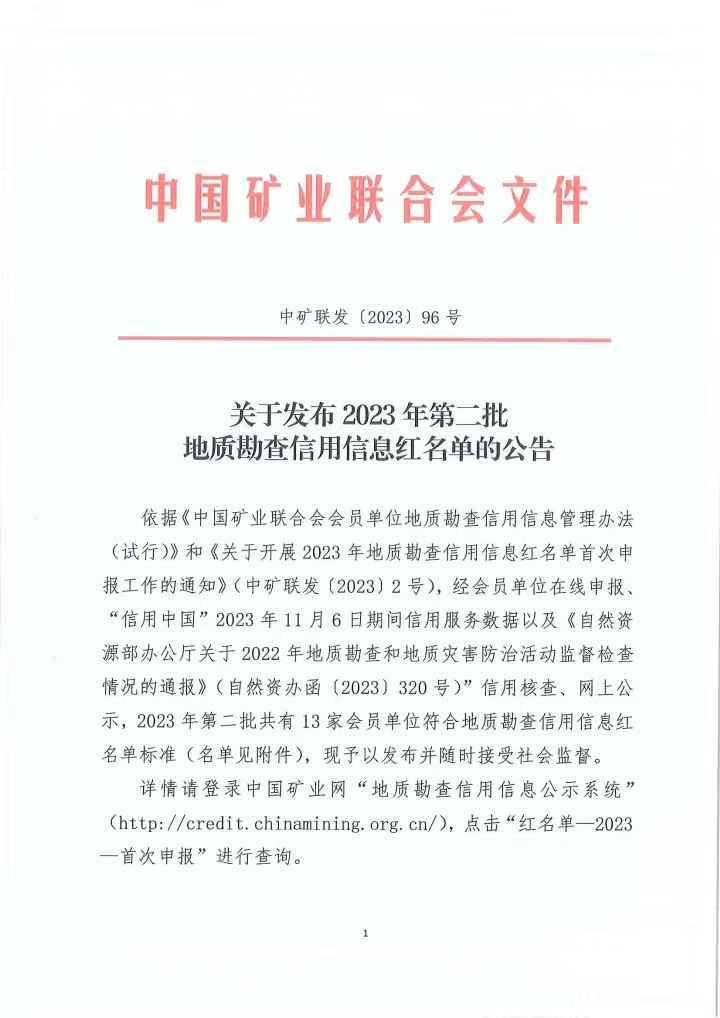 中國(guó)礦業(yè)聯(lián)合會(huì):關(guān)于發(fā)布2023年第二批地質(zhì)勘查信用信息紅名單的公告