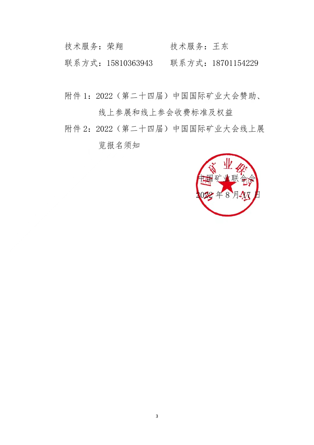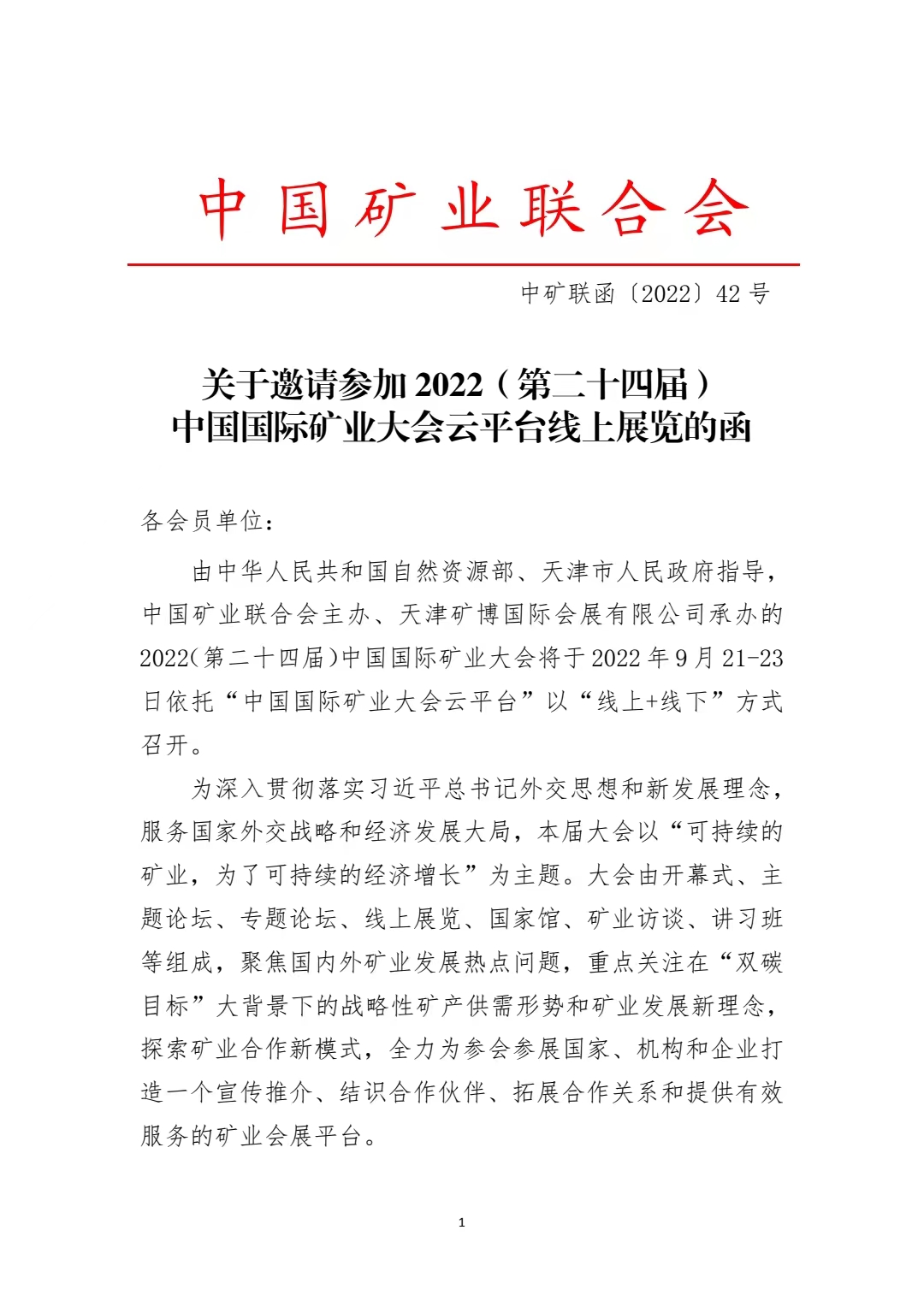 關(guān)于邀請(qǐng)參加2022(第二十四屆)中國(guó)國(guó)際礦業(yè)大會(huì)云平臺(tái)線上展覽的函