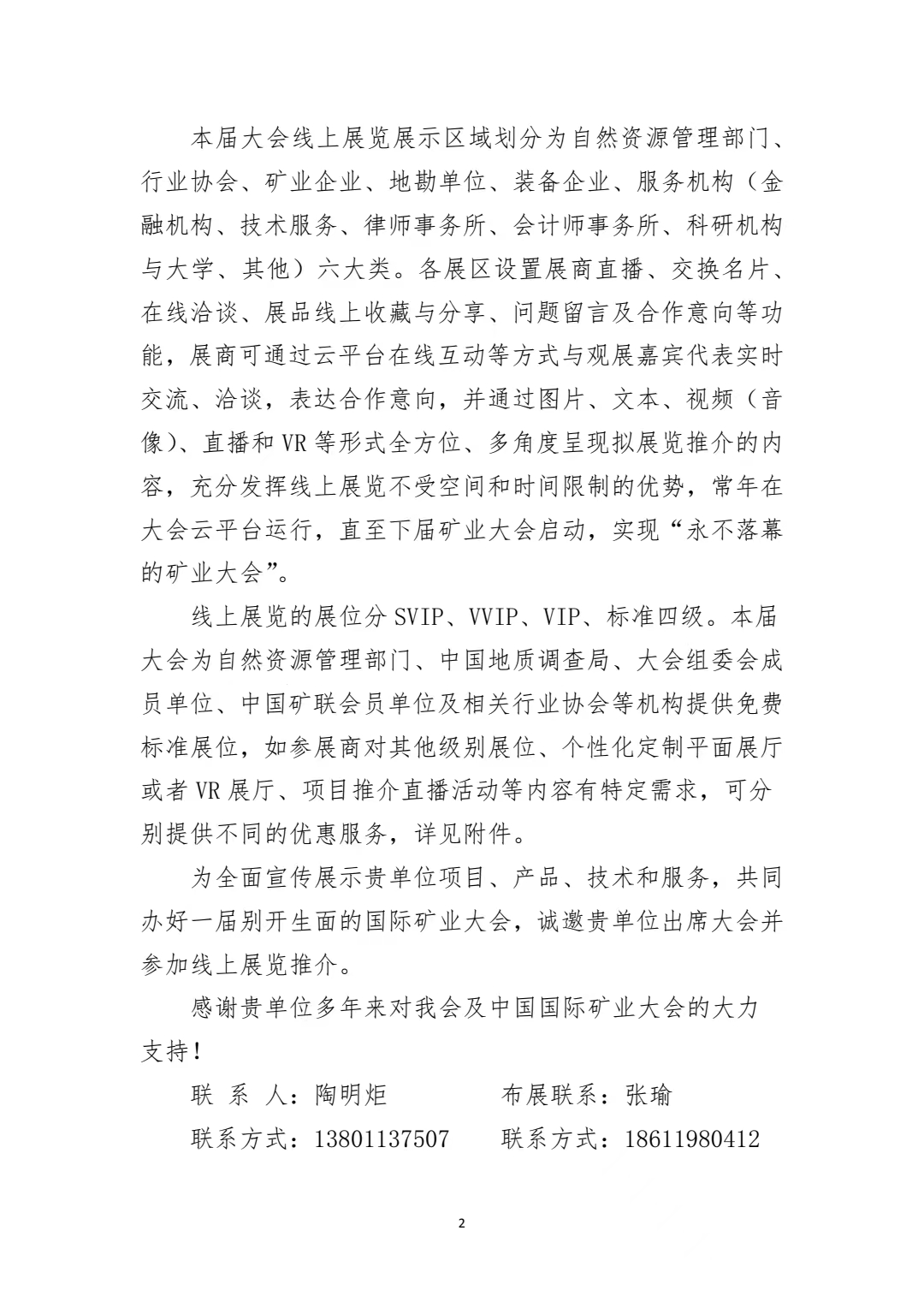 下載通知:關(guān)于邀請(qǐng)參加2022(第二十四屆)中國(guó)國(guó)際礦業(yè)大會(huì)云平臺(tái)線上展覽的函.pdf