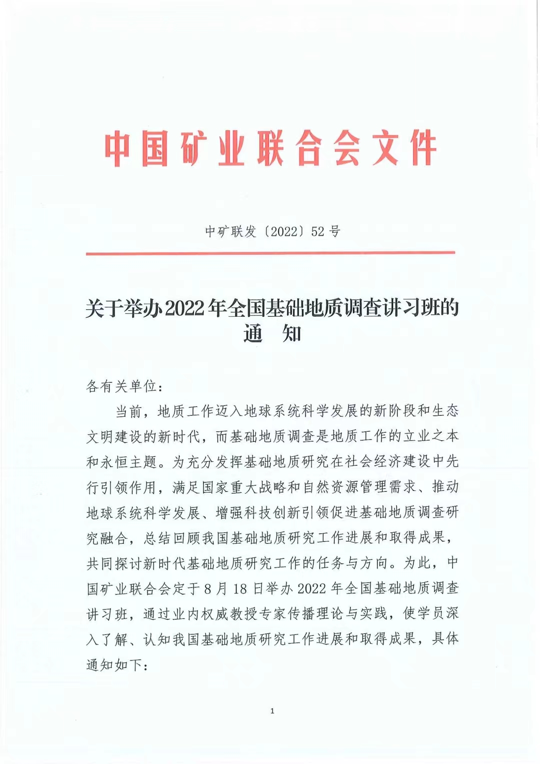當前,地質工作邁入地球系統(tǒng)科學發(fā)展的新階段和生態(tài)文明建設的新時代,而基礎地質調查是地質工作的立業(yè)之本和永恒主題。為充分發(fā)揮基礎地質研究在社會經濟建設中先行引領作用,滿足國家重大戰(zhàn)略和自然資源管理需求、推動地球系統(tǒng)科學發(fā)展、增強科技創(chuàng)新引領促進基礎地質調查研究融合,總結回顧我國基礎地質研究工作進展和取得成果,共同探討新時代基礎地質研究工作的任務與方向。為此,中國礦業(yè)聯(lián)合會定于8月18日舉辦2022年全國基礎地質調查講習班,通過業(yè)內權威教授專家傳播理論與實踐,使學員深入了解、認知我國基礎地質研究工作進展和取得成果。
