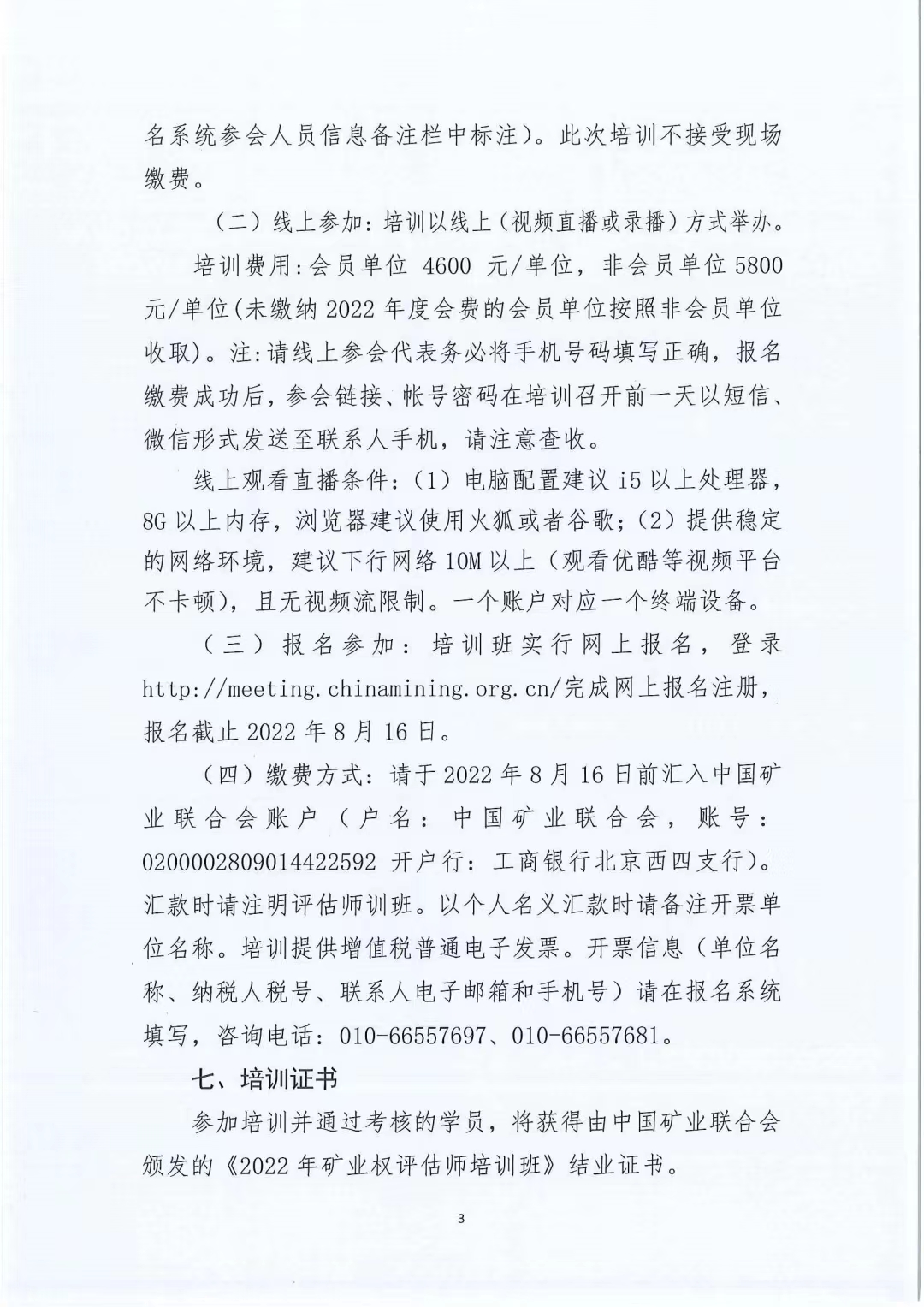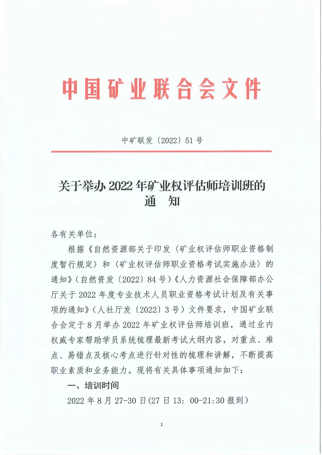 中國礦業(yè)聯(lián)合會:關于舉辦2022年礦業(yè)權評估師培訓班的通知