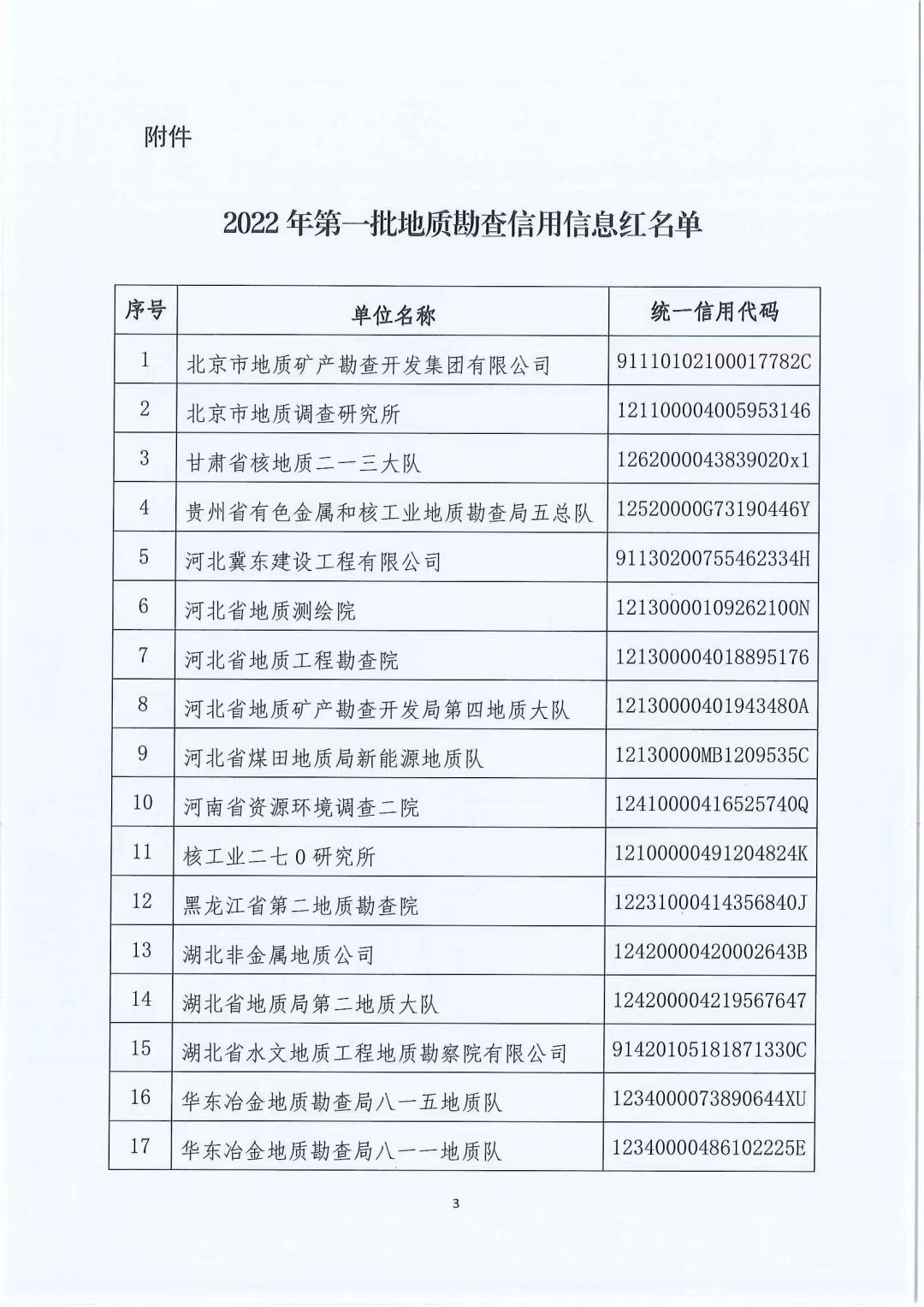 關(guān)于發(fā)布2022年第一批地質(zhì)勘查信用信息紅名單的公告