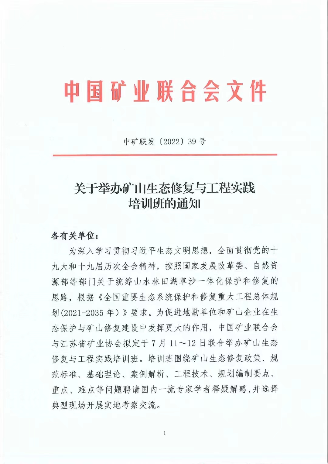 中國礦業(yè)聯(lián)合會(huì):關(guān)于舉辦礦山生態(tài)修復(fù)與工程實(shí)踐培訓(xùn)班的通知
