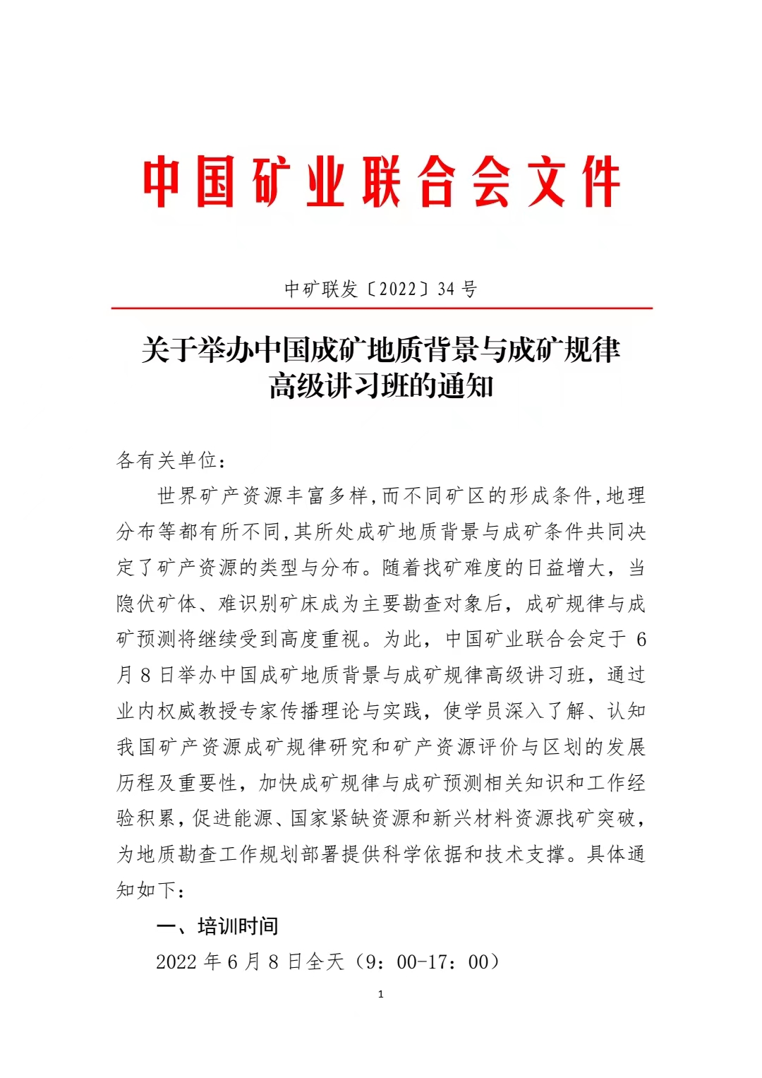 中國礦業(yè)聯(lián)合會關(guān)于舉辦中國成礦地質(zhì)背景與成礦規(guī)律高級講習(xí)班的通知