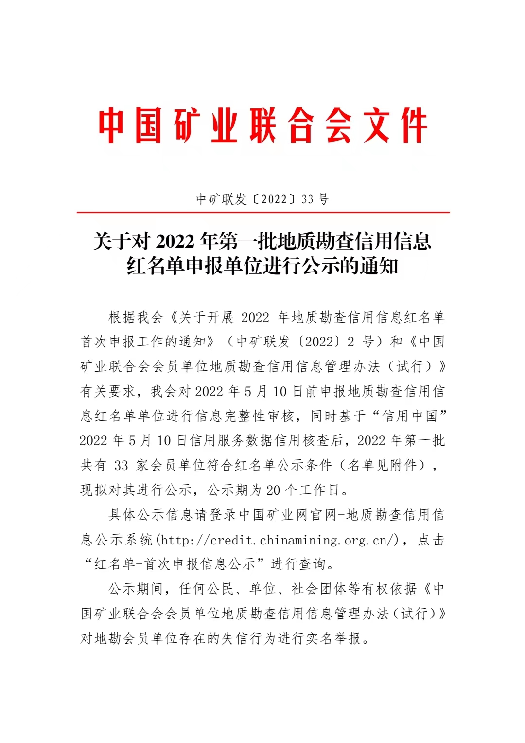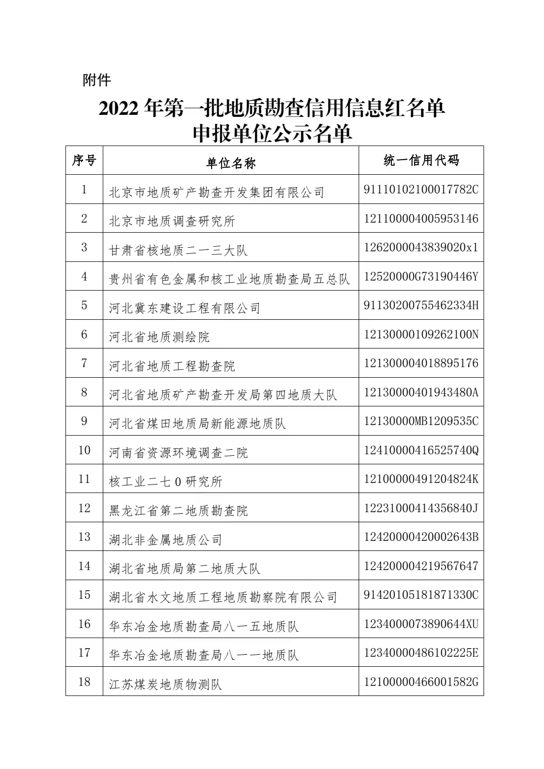 關(guān)于對2022年第一批地質(zhì)勘查信用信息紅名單申報單位進行公示的通知