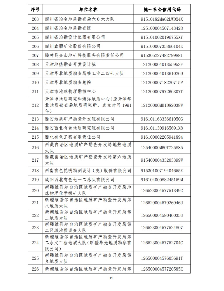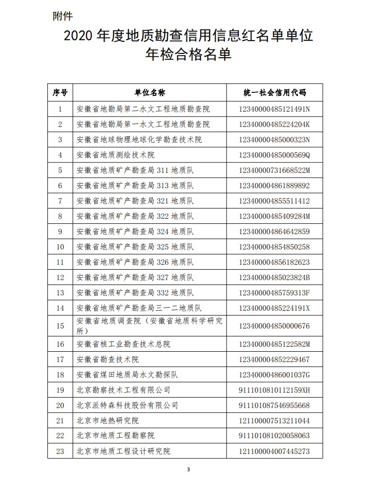 公告:2020年度地質(zhì)勘查信用信息紅名單單位年檢合格名單