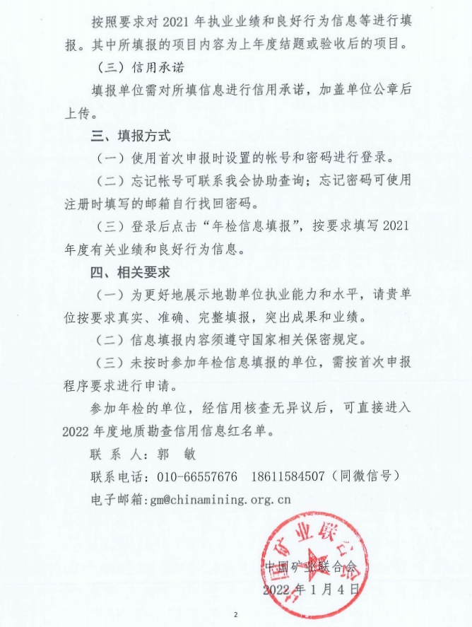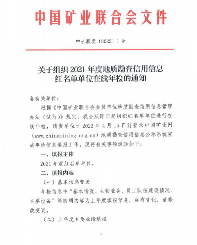 中國礦業(yè)聯(lián)合會:關于組織2021年度地質勘查信用信息紅名單單位在線年檢的通知