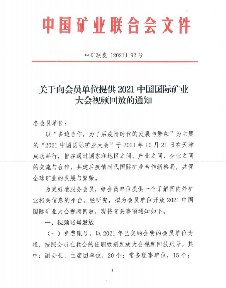 下載通知:關(guān)于向會(huì)員單位提供2021中國(guó)國(guó)際礦業(yè)大會(huì)視頻回放的通知.pdf
