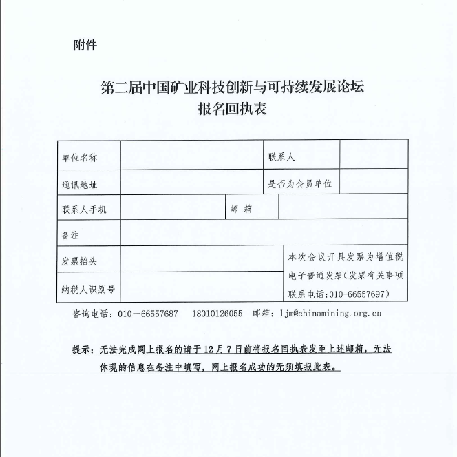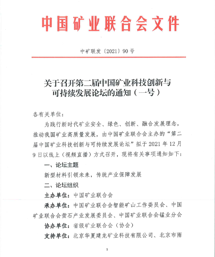 關(guān)于召開(kāi)第二屆中國(guó)礦業(yè)科技創(chuàng)新與可持續(xù)發(fā)展論壇的通知(一號(hào))