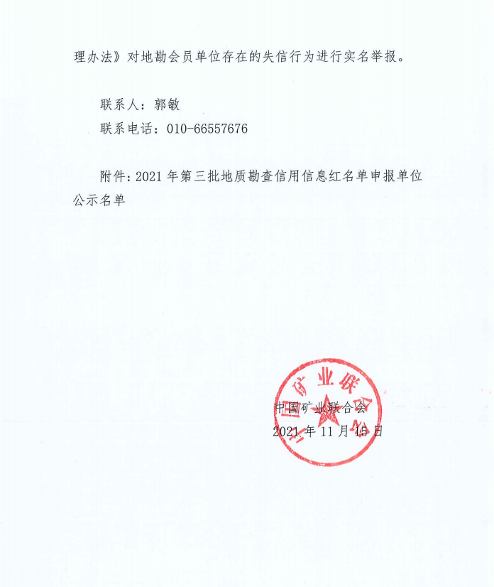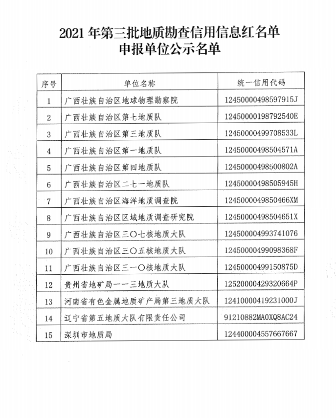 關(guān)于對2021年第三批地質(zhì)勘查信用信息紅名單申報單位進行公示的通知