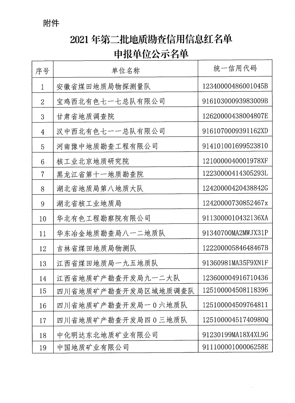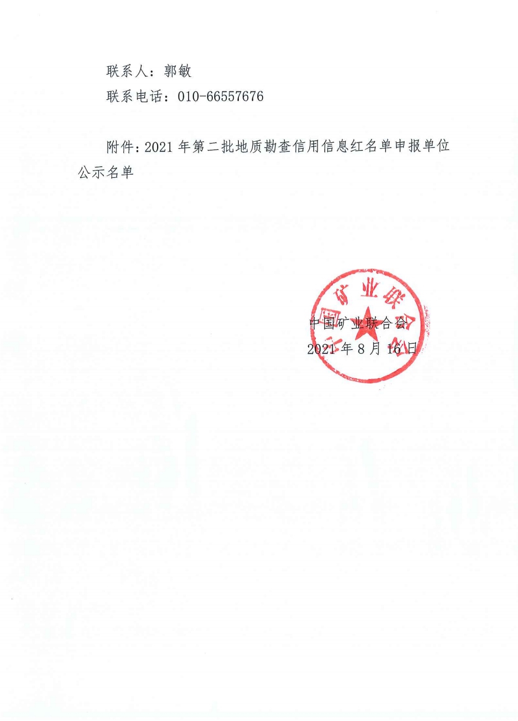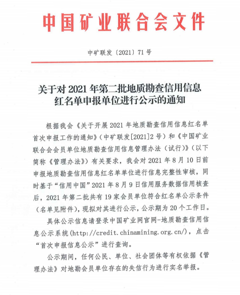 中國(guó)礦業(yè)聯(lián)合會(huì)公示:2021年第二批地質(zhì)勘查信用信息紅名單