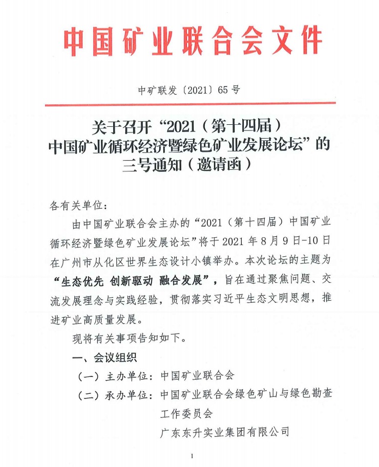 2021(第十四屆)中國(guó)礦業(yè)循環(huán)經(jīng)濟(jì)暨綠色礦業(yè)發(fā)展論壇即將召開(kāi)
