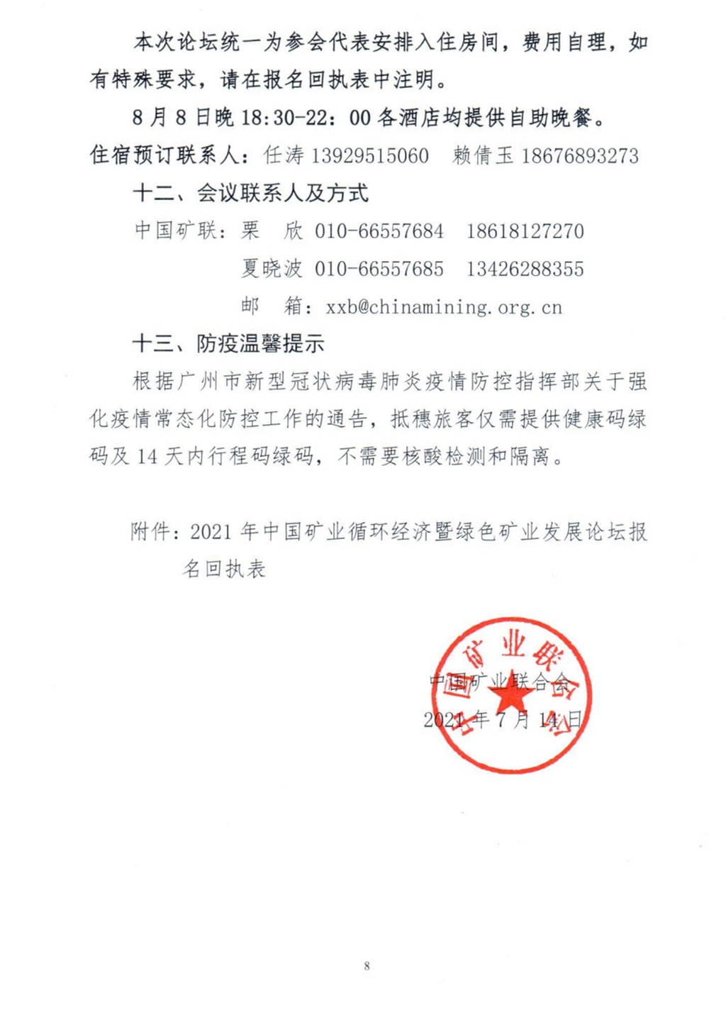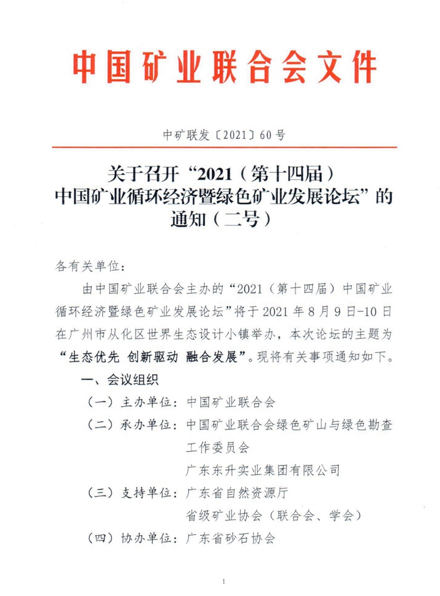 關(guān)于召開“2021(第十四屆)中國礦業(yè)循環(huán)經(jīng)濟暨綠色礦業(yè)發(fā)展論壇”的通知