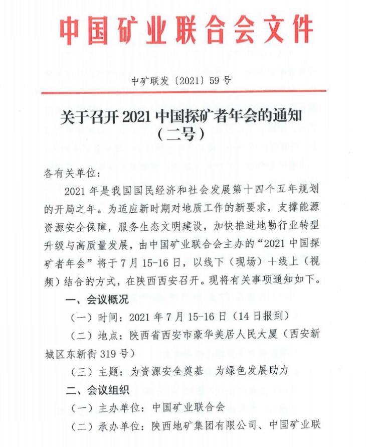 中國(guó)礦業(yè)聯(lián)合會(huì):2021中國(guó)探礦者年會(huì)的通知