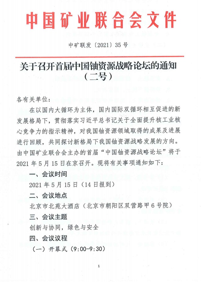 關(guān)于召開首屆中國鈾資源戰(zhàn)略論壇的通知