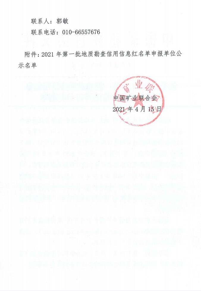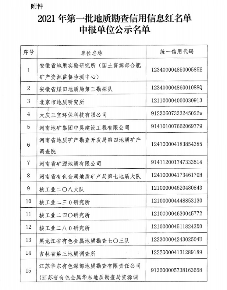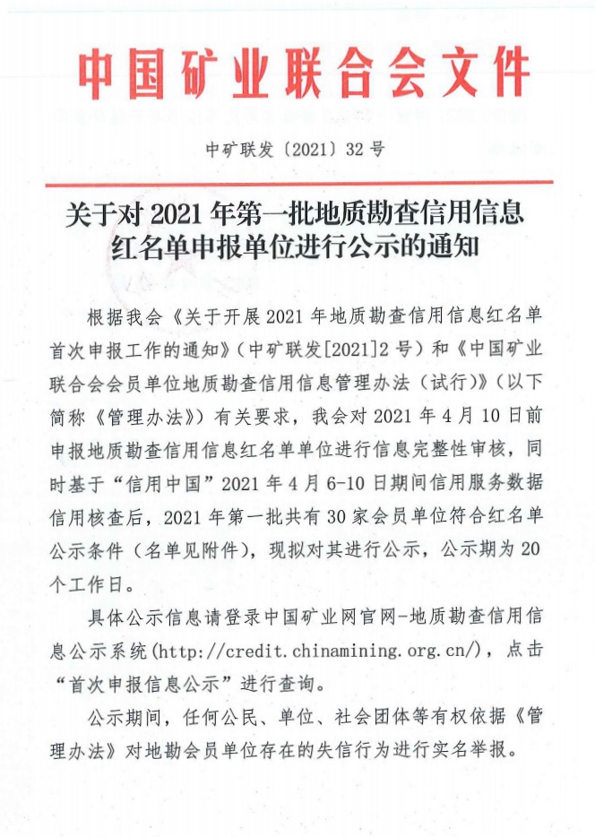 2021年第一批地質(zhì)勘查信用信息 紅名單申報單位進(jìn)行公示的通知