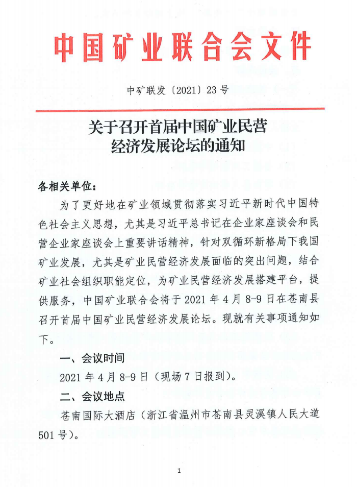 關(guān)于召開首屆中國礦業(yè)民營經(jīng)濟發(fā)展論壇的通知