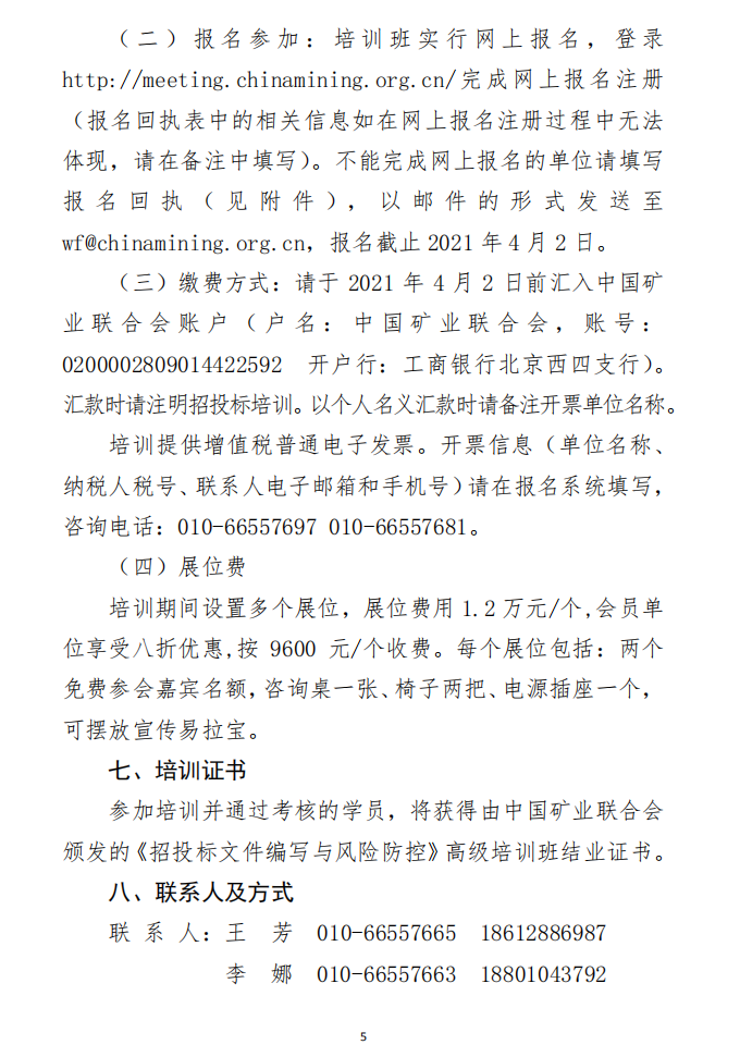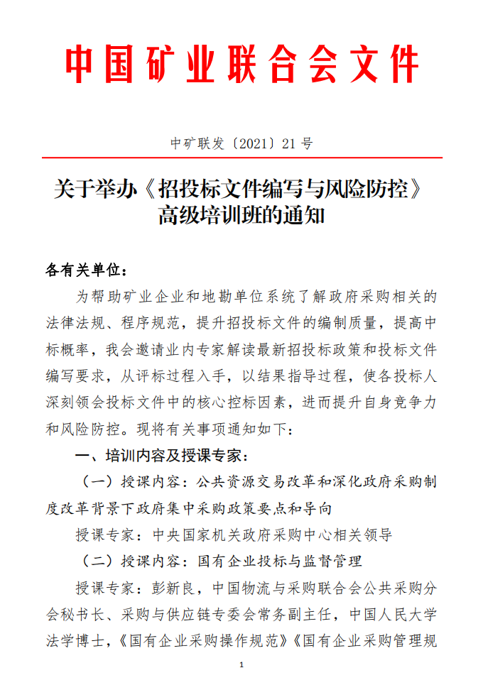 中國(guó)礦業(yè)聯(lián)合會(huì)關(guān)于舉辦《招投標(biāo)文件編寫(xiě)與風(fēng)險(xiǎn)防控》高級(jí)培訓(xùn)班的通知