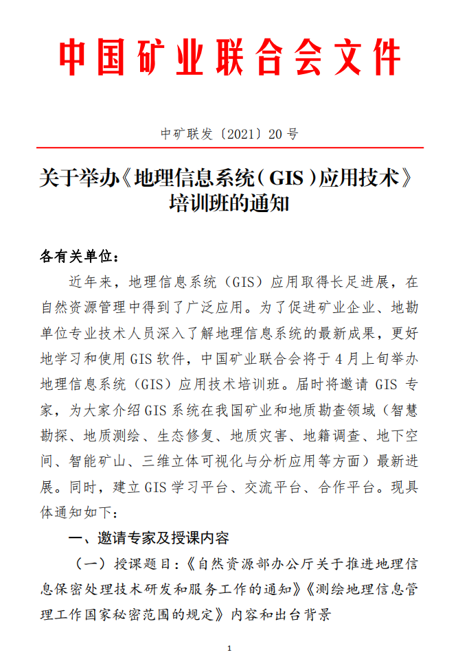 中國礦業(yè)聯(lián)合會關(guān)于舉辦《地理信息系統(tǒng)(GIS)應用技術(shù)》 培訓班的通知
