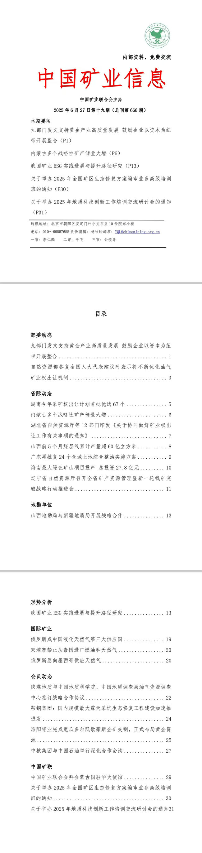 2025年6月23日—6月27日《中國(guó)礦業(yè)信息》第十九期(總刊第666期)