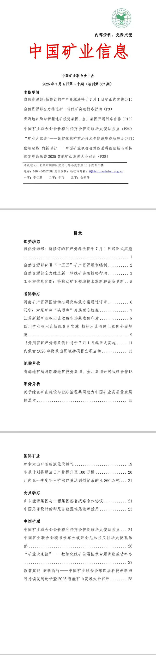 2025年6月30日—7月4日《中國(guó)礦業(yè)信息》第二十期(總刊第667期)
