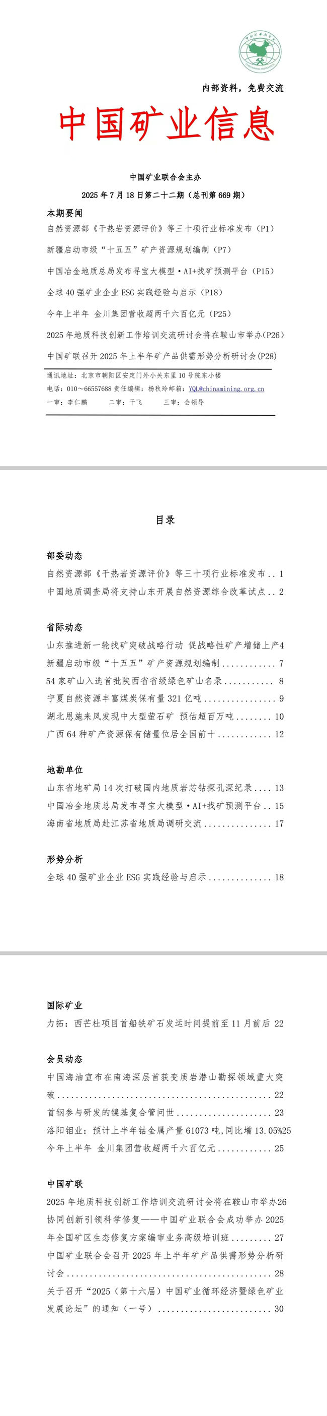2025年7月14日—7月18日《中國礦業(yè)信息》第二十二期(總刊第669期)