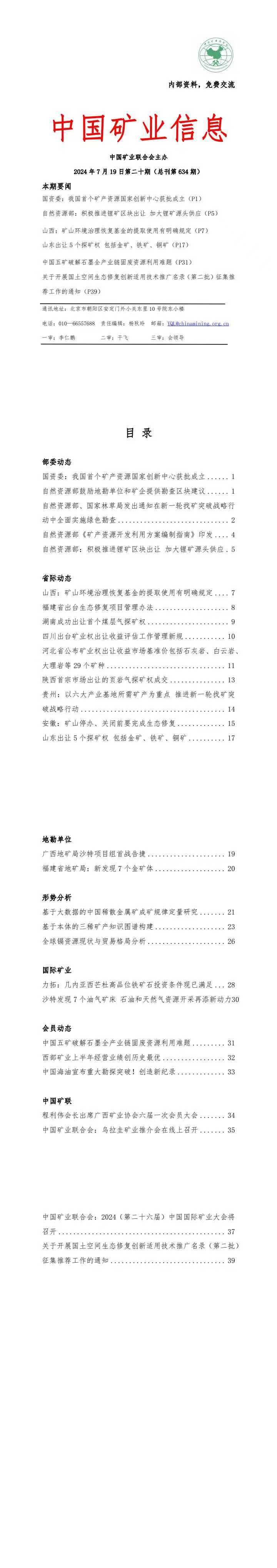 中國(guó)礦業(yè)網(wǎng):2024年7月15日—7月19日《中國(guó)礦業(yè)信息》第二十期