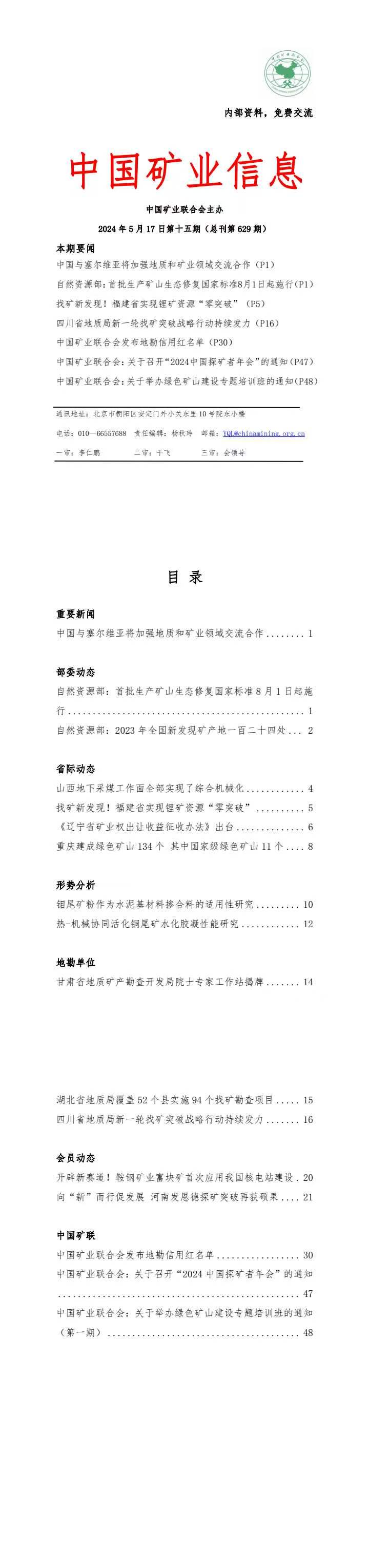 中國(guó)礦業(yè)網(wǎng):2024年5月13日—5月17日《中國(guó)礦業(yè)信息》第十五期