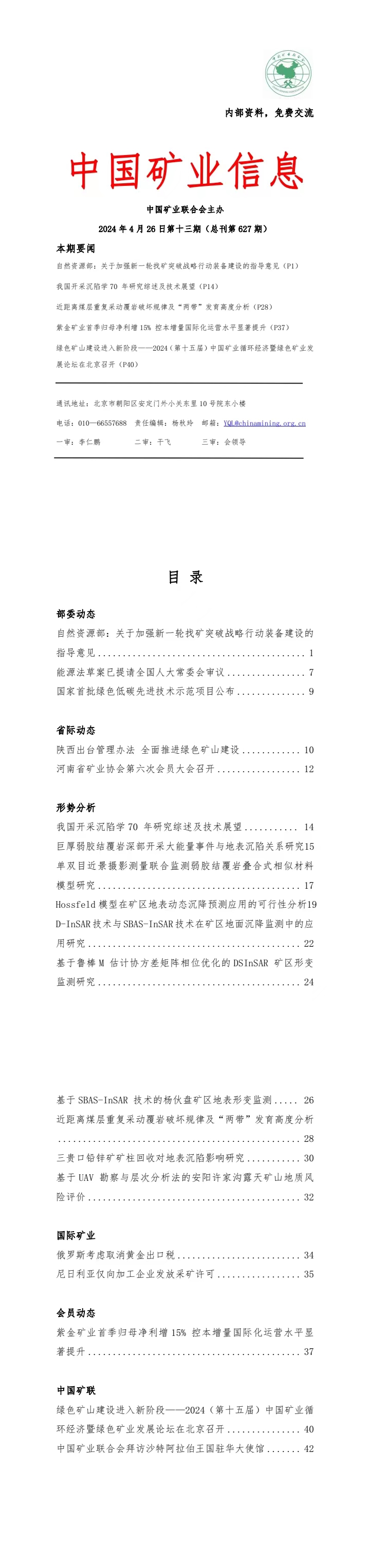 中國礦業(yè)網:2024年4月22日—4月26日《中國礦業(yè)信息》第十三期