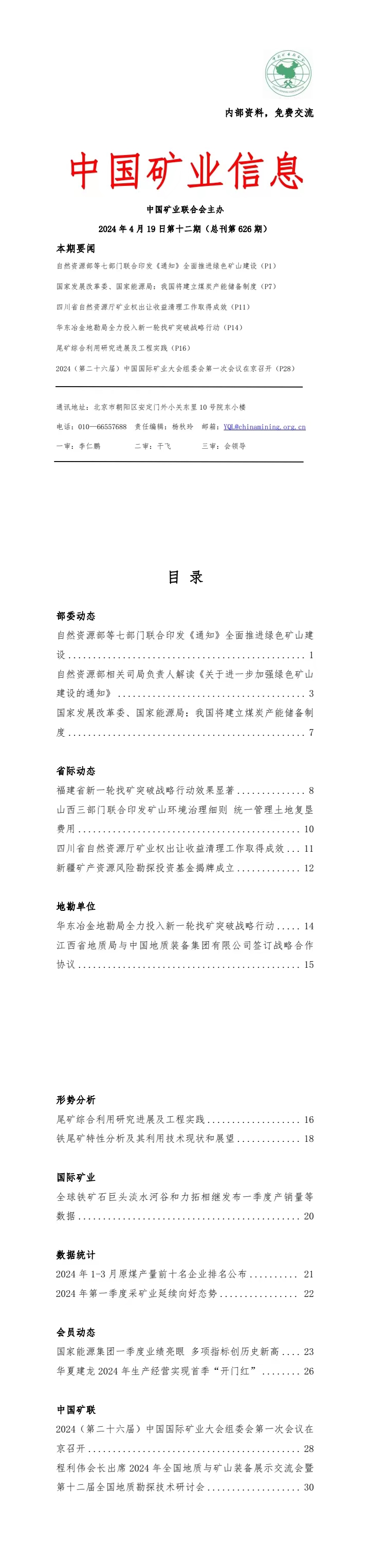 中國礦業(yè)網(wǎng):2024年4月15日—4月19日《中國礦業(yè)信息》第十二期