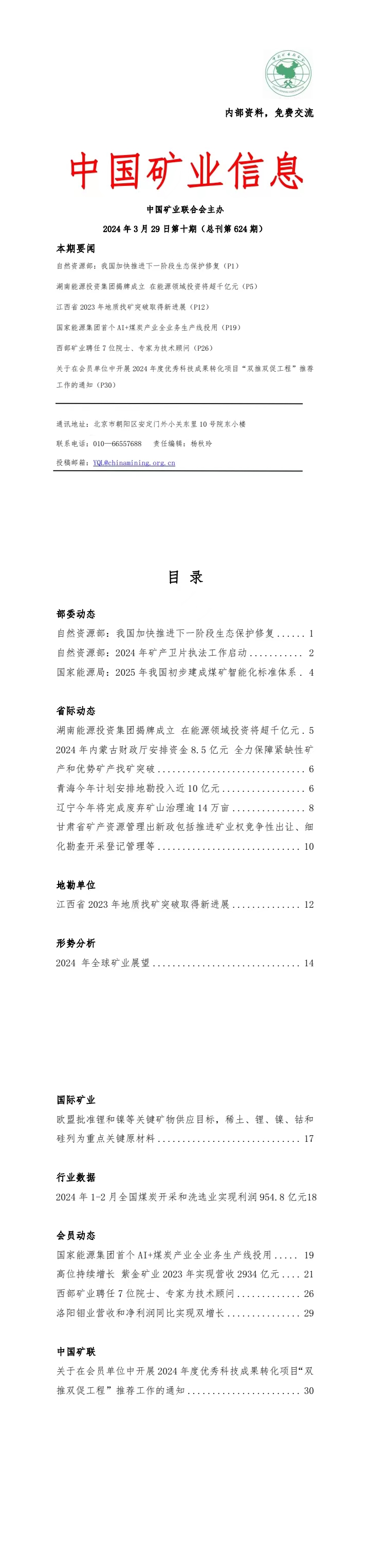 中國礦業(yè)網(wǎng):2024年3月25日—3月29日《中國礦業(yè)信息》第十期