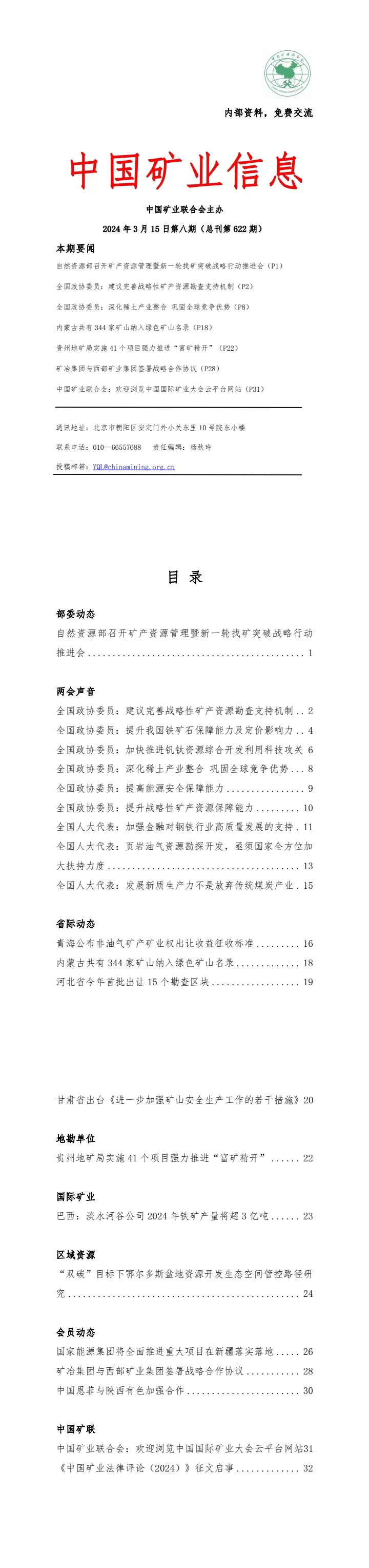 中國礦業(yè)網(wǎng):2024年3月11日—3月15日《中國礦業(yè)信息》第八期