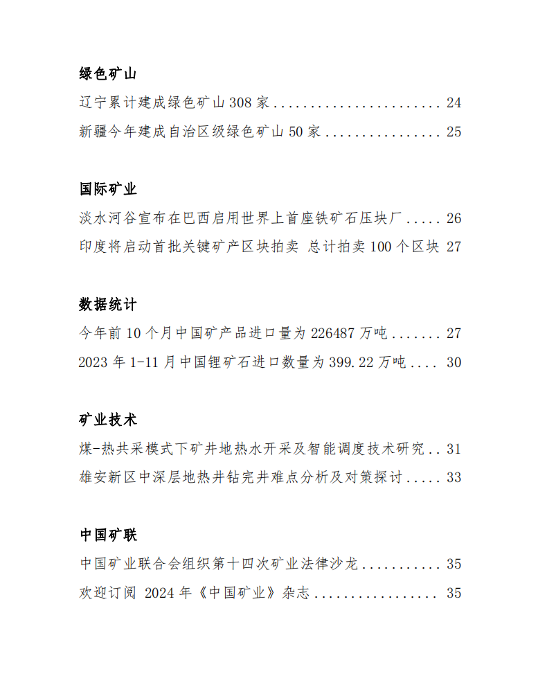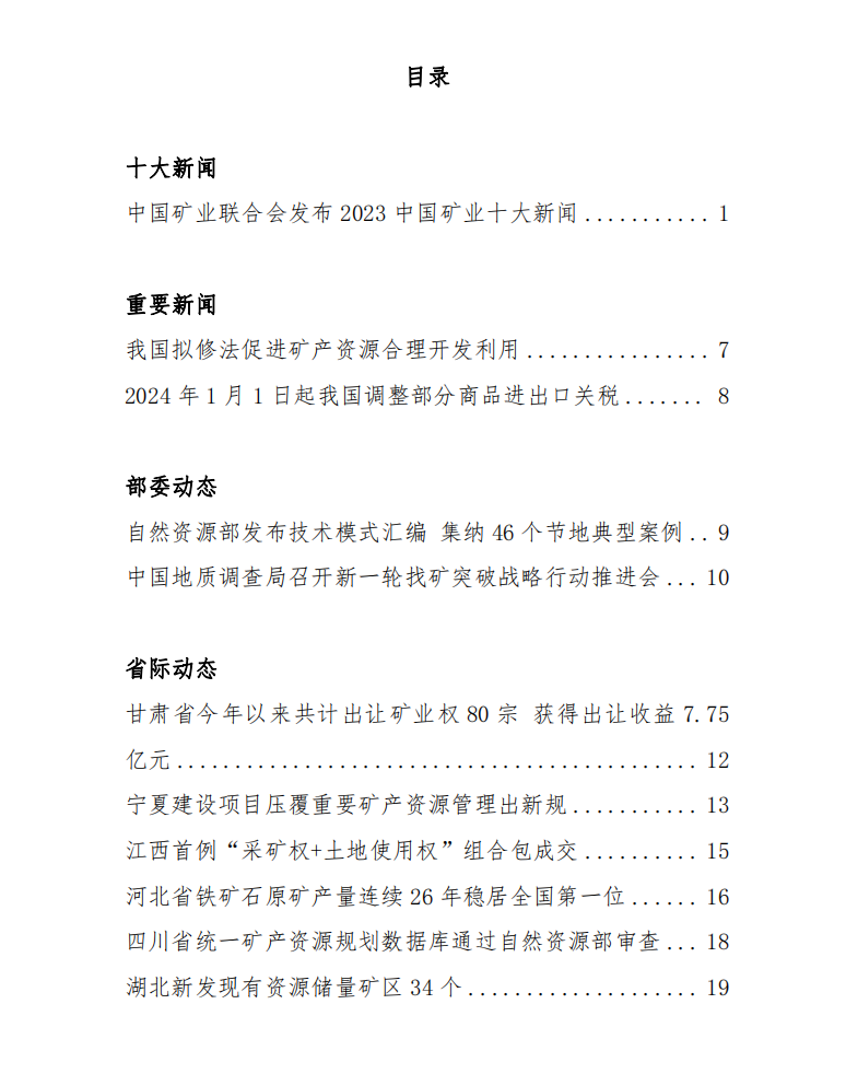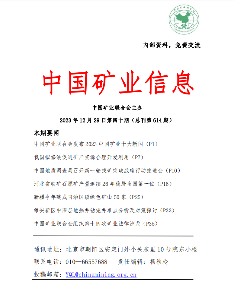 中國礦業(yè)網(wǎng):2023年12月25日—12月29日《中國礦業(yè)信息》第四十期