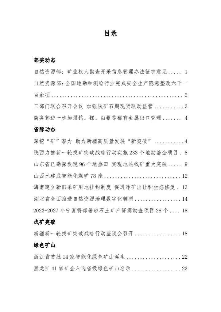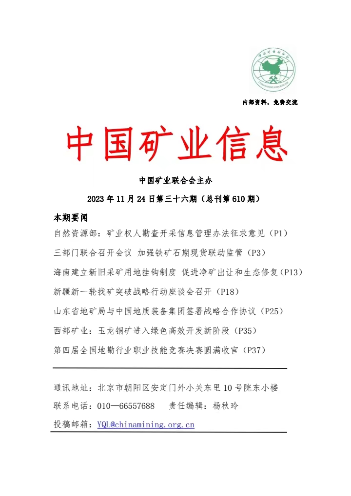 中國礦業(yè)網(wǎng):2023年11月20日—11月24日《中國礦業(yè)信息》第三十六期