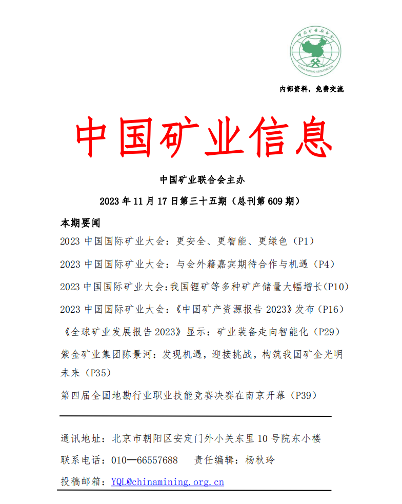 中國(guó)礦業(yè)網(wǎng):2023年11月13日—11月17日《中國(guó)礦業(yè)信息》第三十五期(礦業(yè)大會(huì)專(zhuān)刊之三)