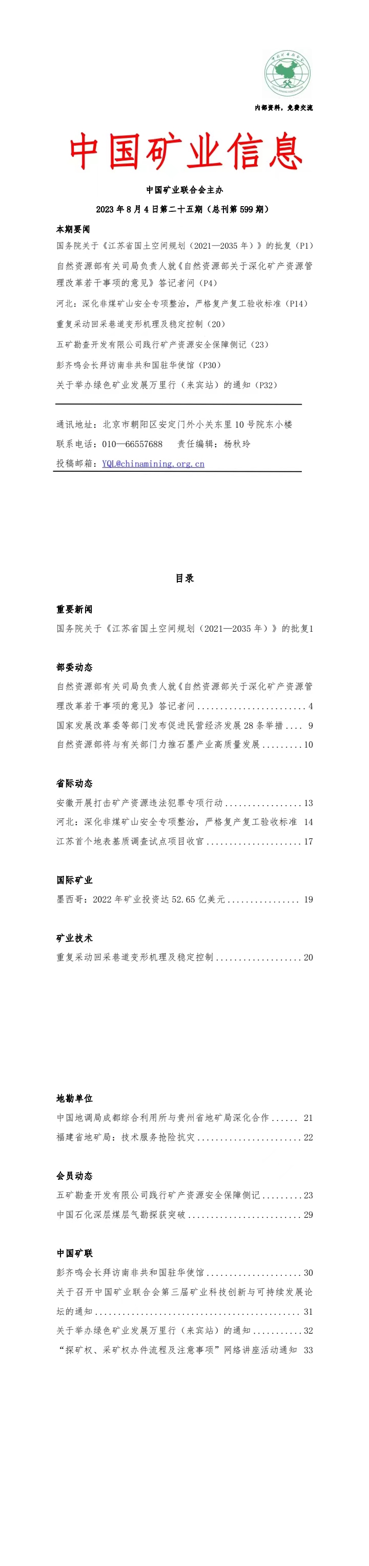 中國礦業(yè)網:2023年7月31日—8月4日《中國礦業(yè)信息》第二十五期