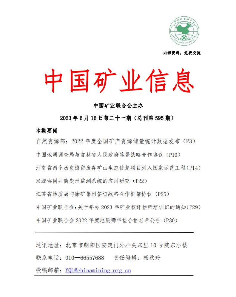 中國礦業(yè)網(wǎng):2023年6月12日—6月16日《中國礦業(yè)信息》第二十一期